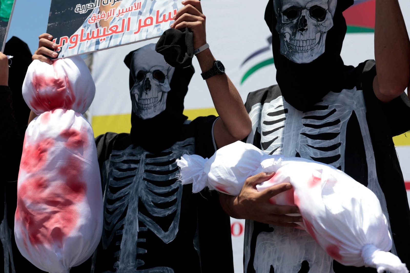 Among participants is a child has shared a shirt in red “jansanin” and “gaza dies”, while another poisived a bag of empty, in reference to bases in the strip.