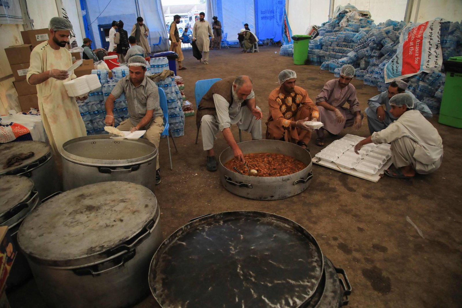 Omid is preparing the food of food in great pots, then he goes out to distribute it to the immigrants, despite his suffering from a disability in his leg.