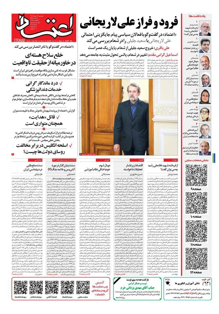 The farewells use the reports that ali Larijans, the moderate governor, and the prommatic, returned to the General Secund related.